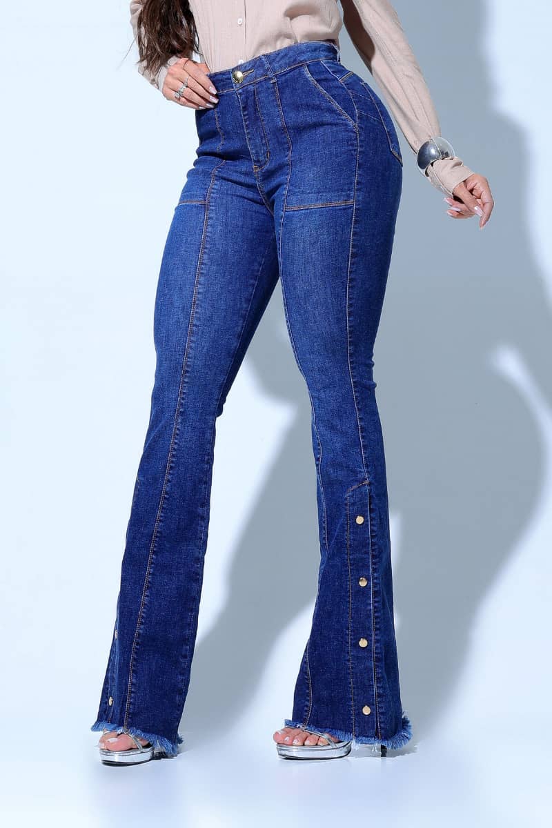 É uma flare estrategicamente construída para transformar o corpo feminino, respeitando curvas reais.
