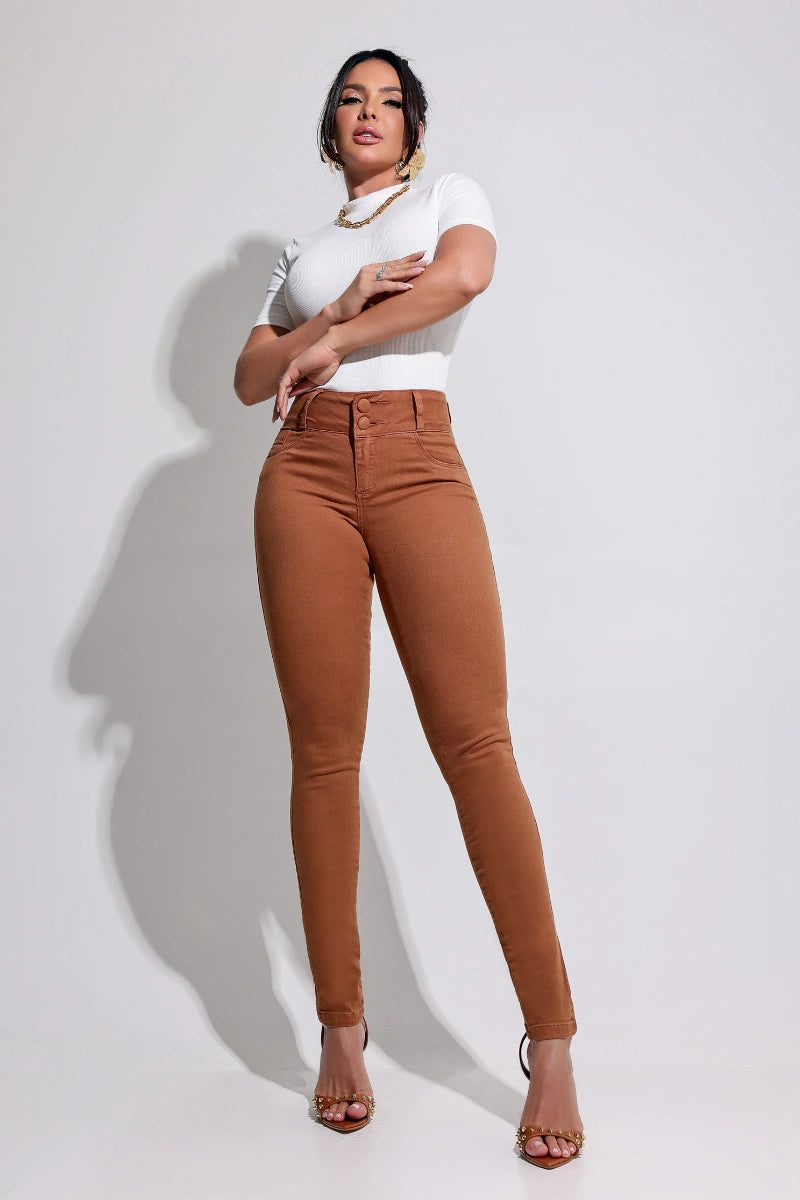 O jeans que tem o fio elastano para modelar e trazer conforto com maior durabilidade, possui a tecnologia MEGA BUMBUM, flexibilidade horizontal e vertical dos seus movimentos, garantindo um caimento perfeito e comodidade sem igual.